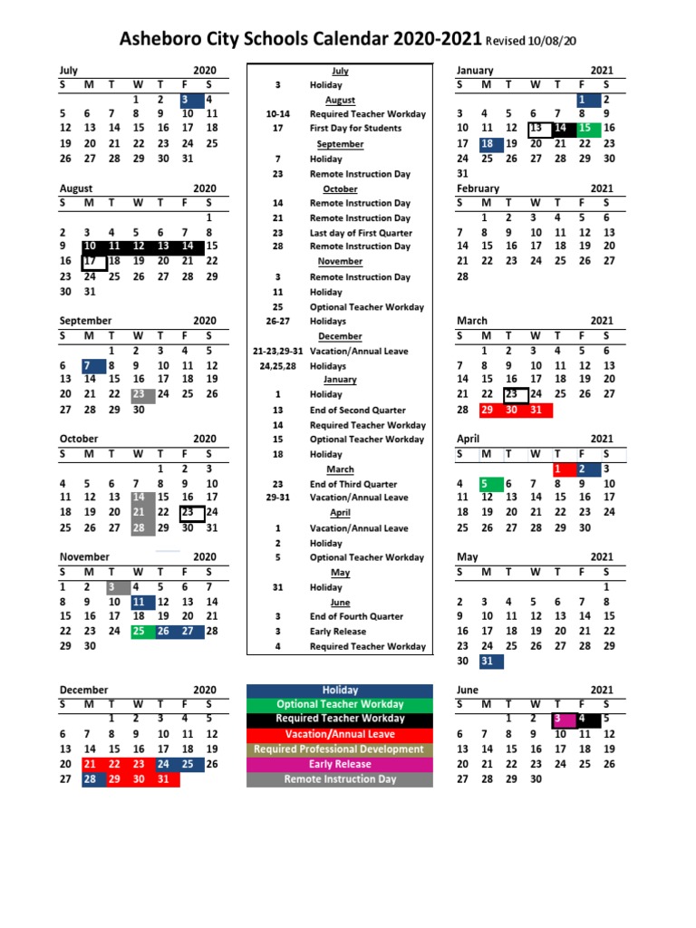 Asheboro City Schools Calendar 2020 2021: Revised 10/08/20 | PDF