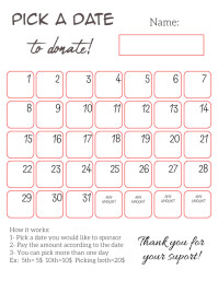 EDITABLE Pageant Fundraiser Calendar, Pick a Date to Donate